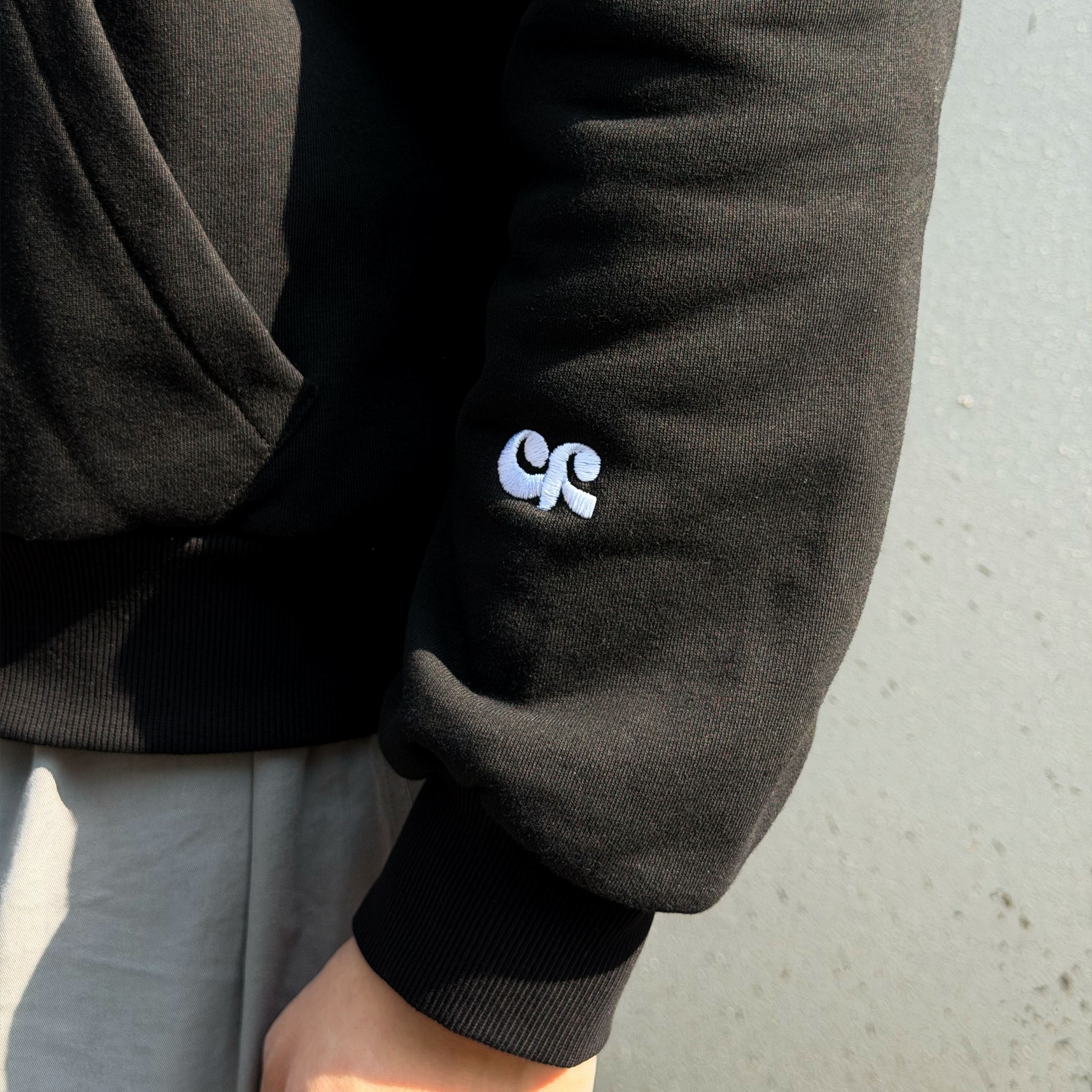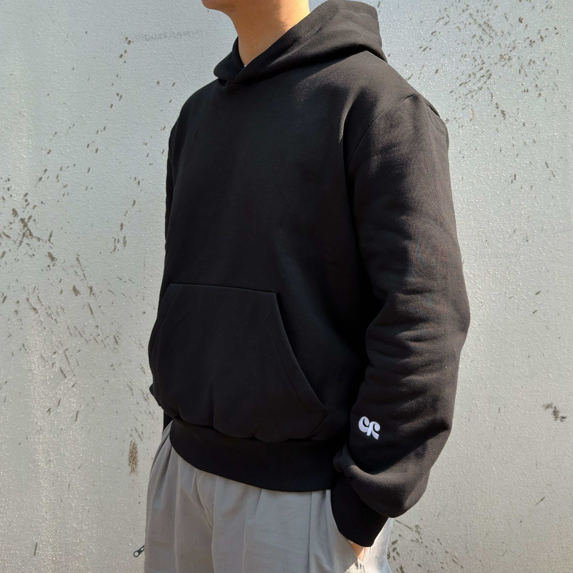 「人人都在滑手機的時代,享受當下不被社群媒體(Social Media)綁架」 為設計理念推出的帽T, 有別於過往推出的 Oversized 版型,此款肩線經過調整,屬於合身版型,左手袖子上有 ENRICH LOGO 刺繡點綴,背後採用網版印刷工藝。