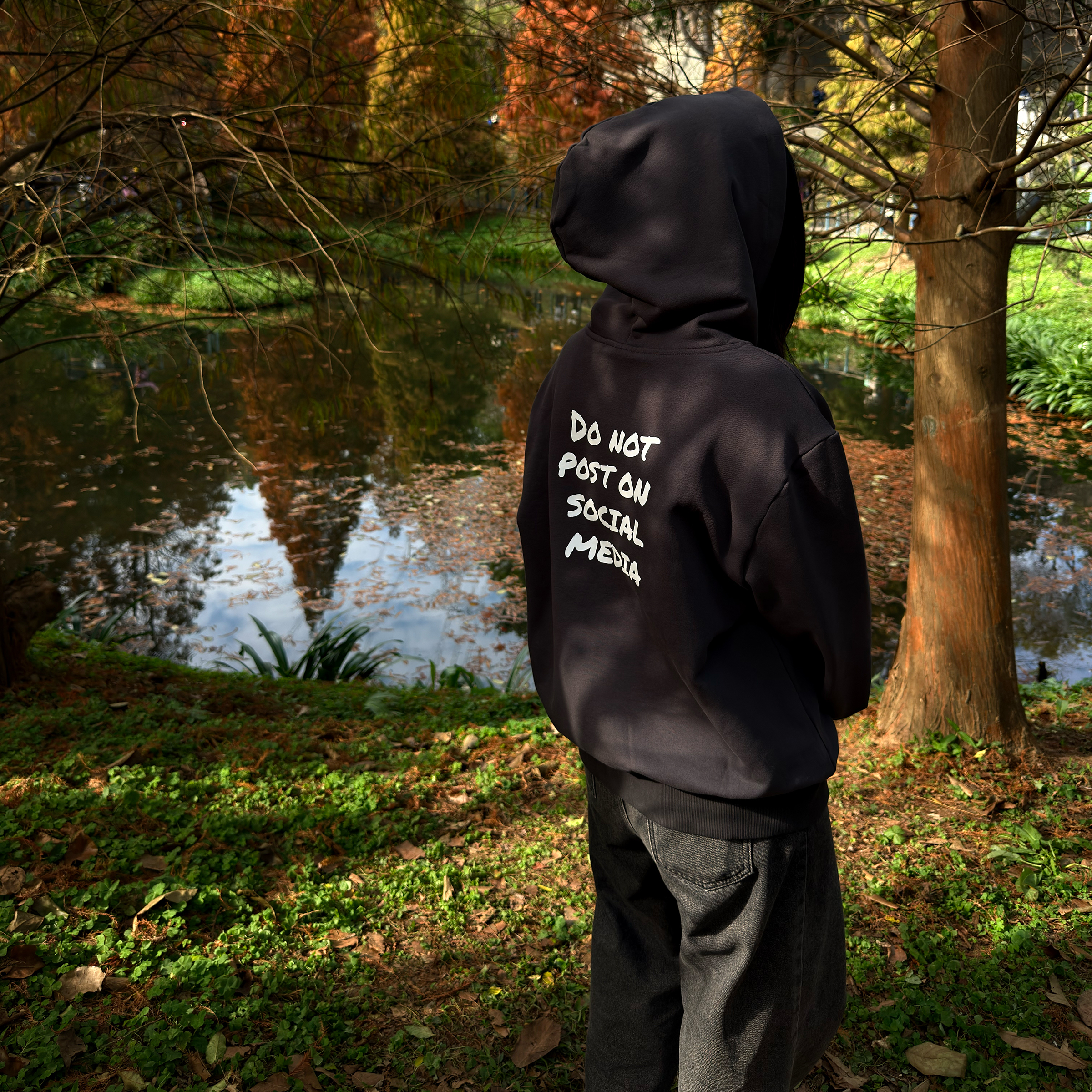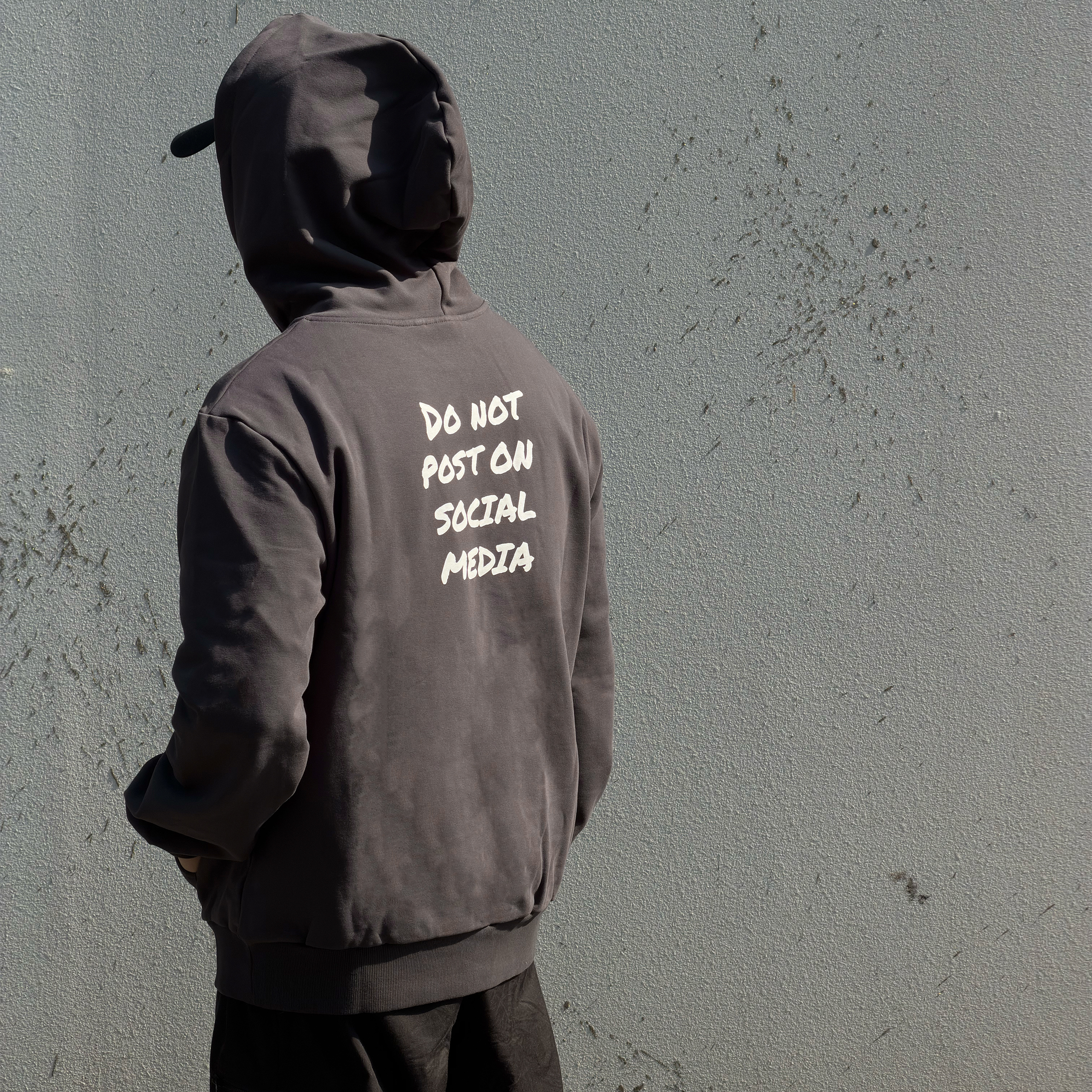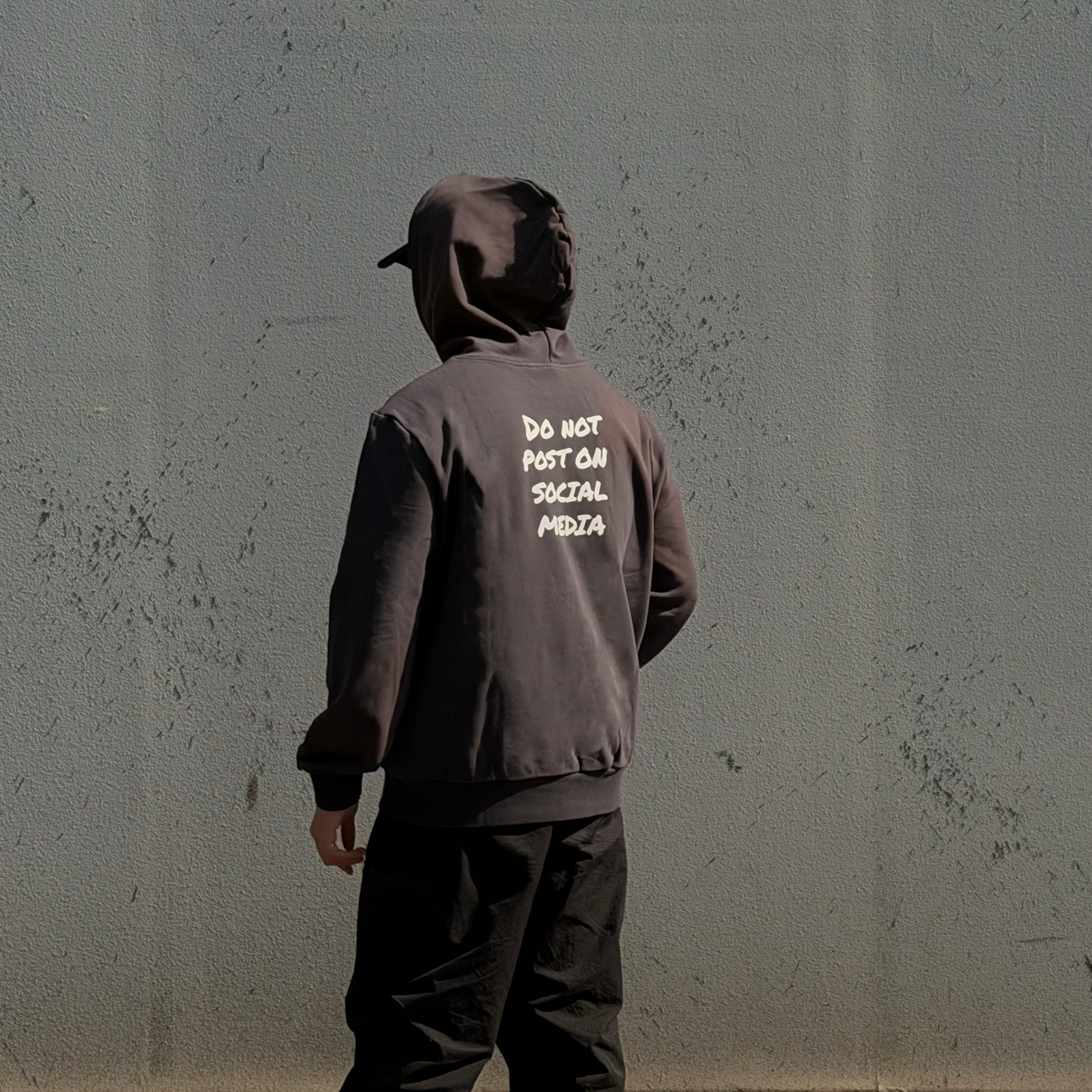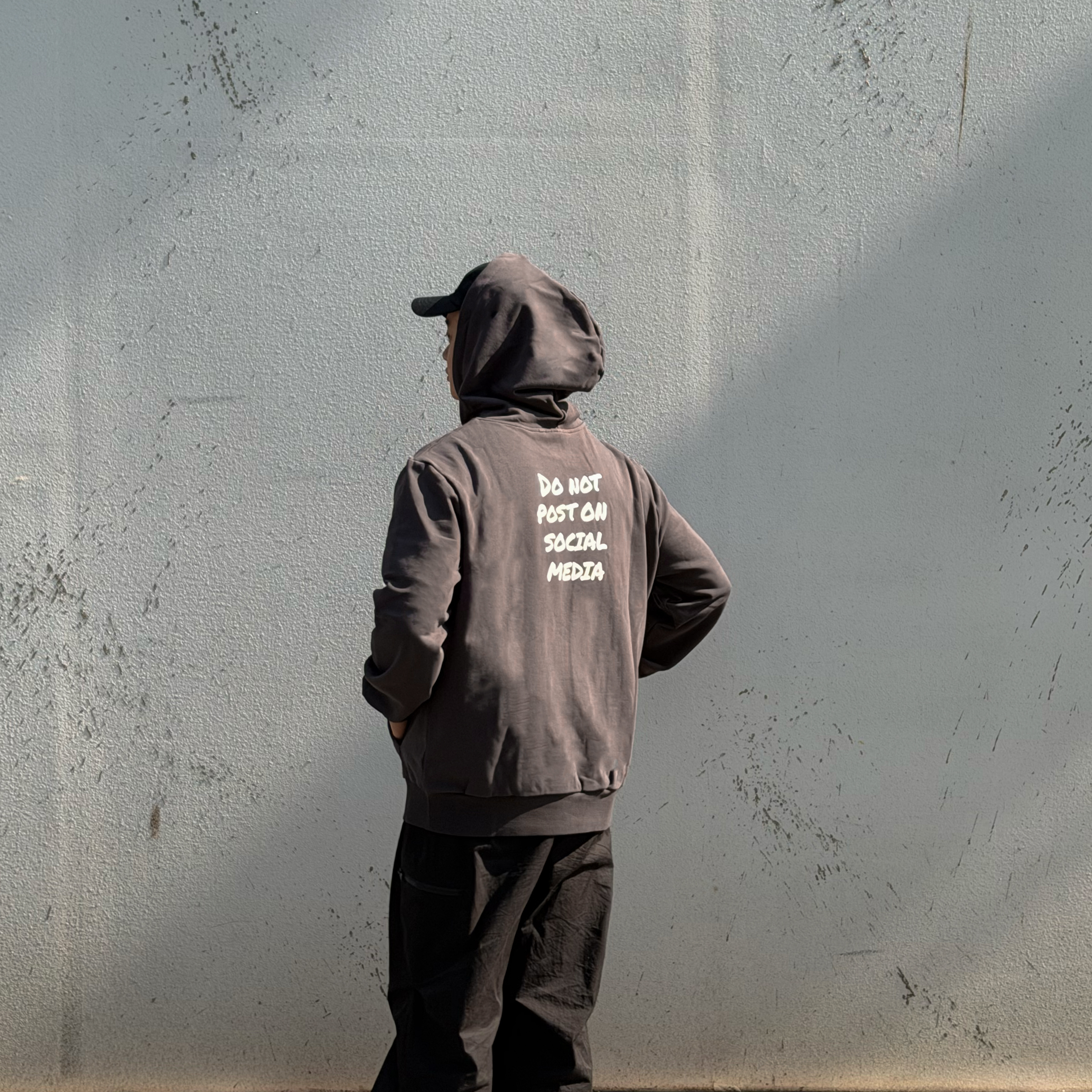 「人人都在滑手機的時代,享受當下不被社群媒體(Social Media)綁架」 為設計理念推出的帽T, 有別於過往推出的 Oversized 版型,此款肩線經過調整,屬於合身版型,左手袖子上有 ENRICH LOGO 刺繡點綴,背後採用網版印刷工藝。