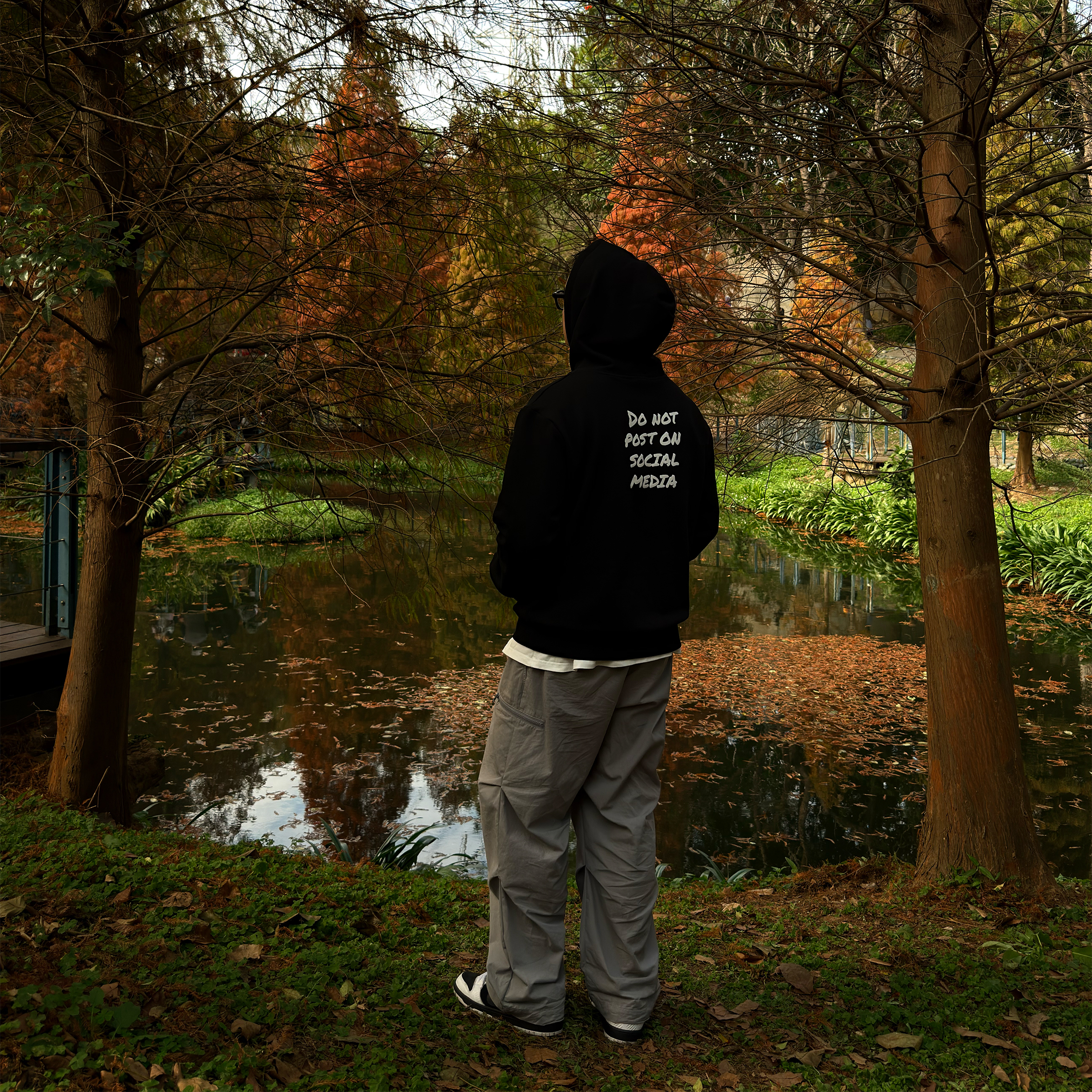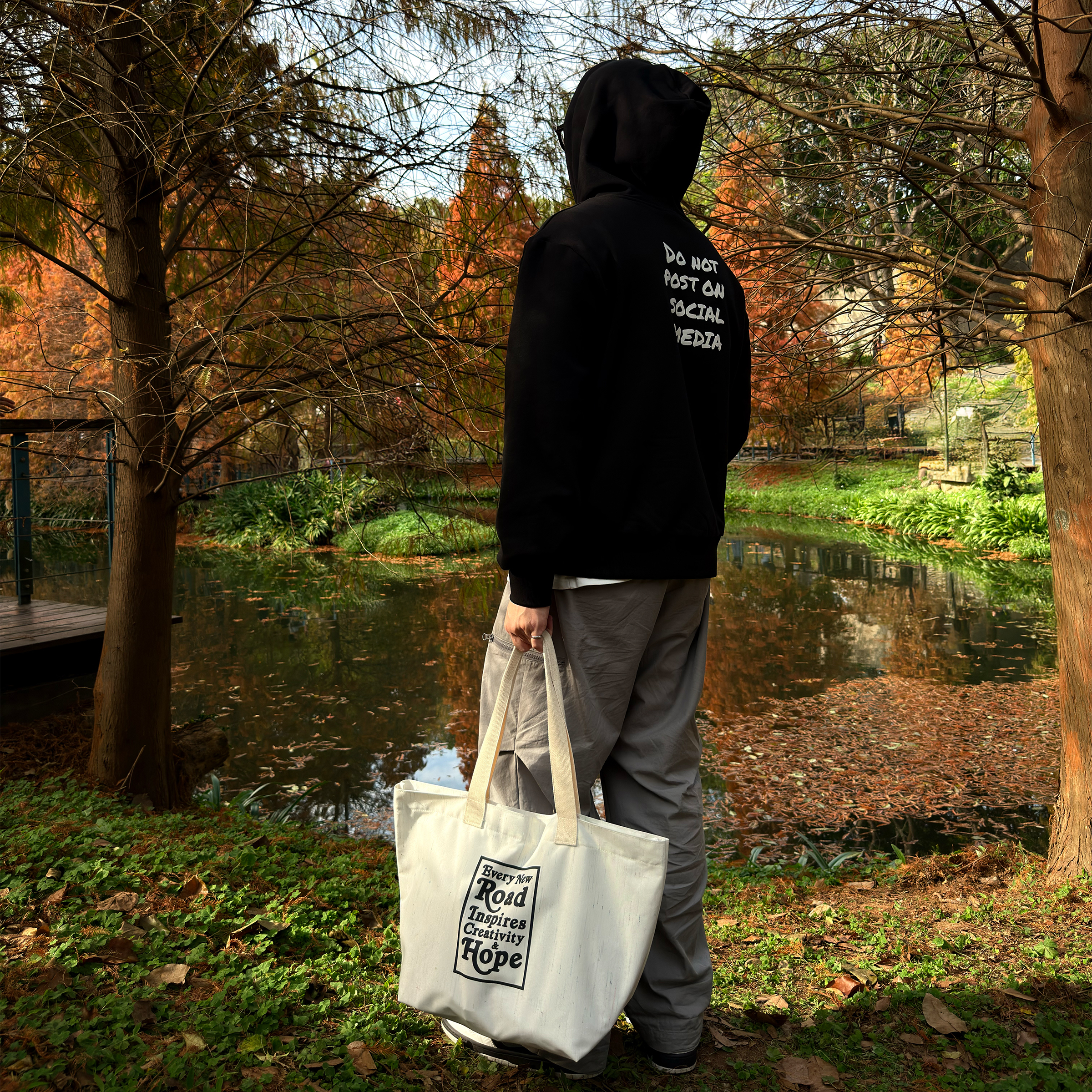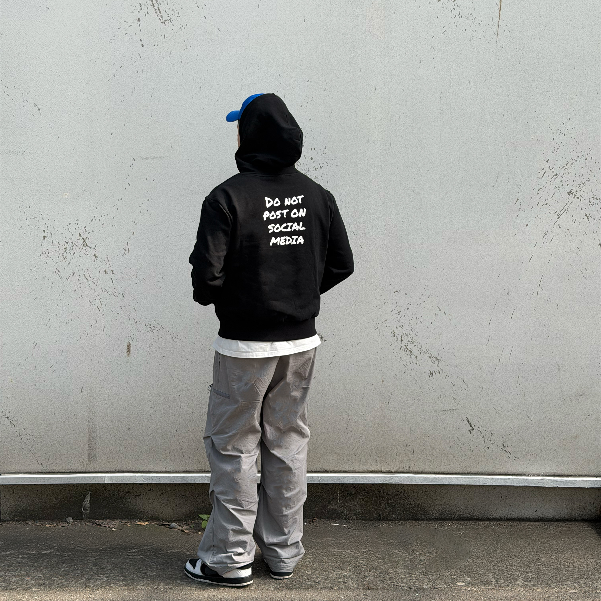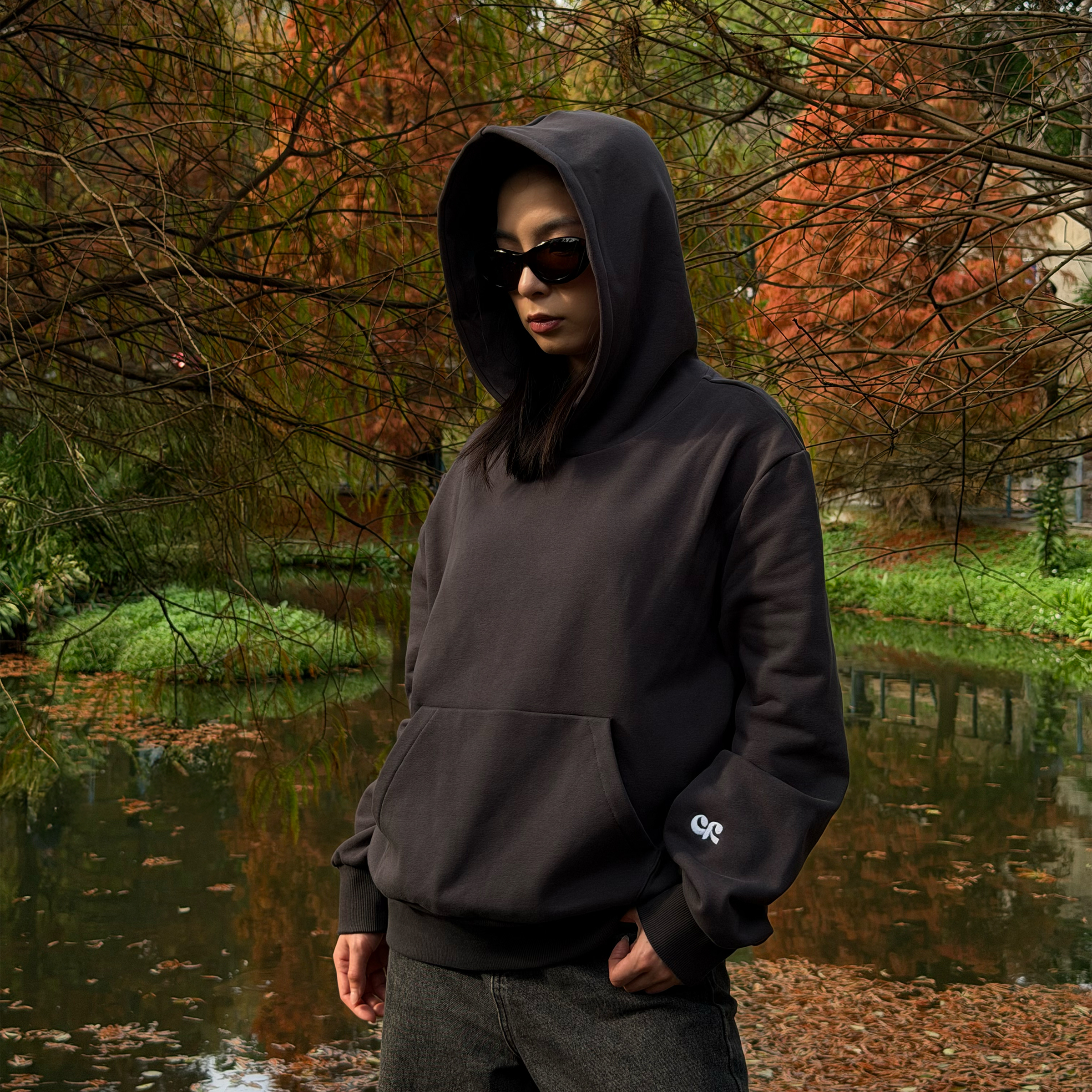 「人人都在滑手機的時代,享受當下不被社群媒體(Social Media)綁架」 為設計理念推出的帽T, 有別於過往推出的 Oversized 版型,此款肩線經過調整,屬於合身版型,左手袖子上有 ENRICH LOGO 刺繡點綴,背後採用網版印刷工藝。
