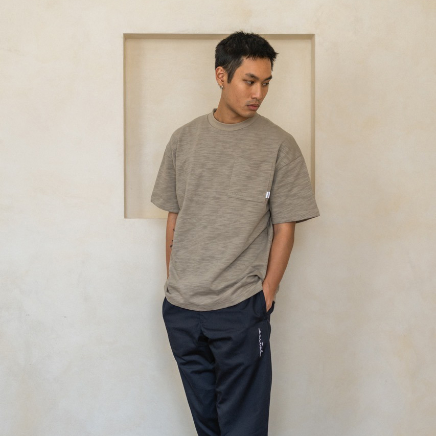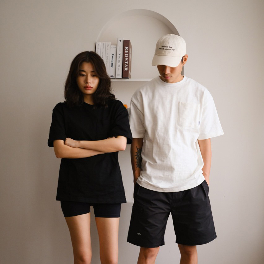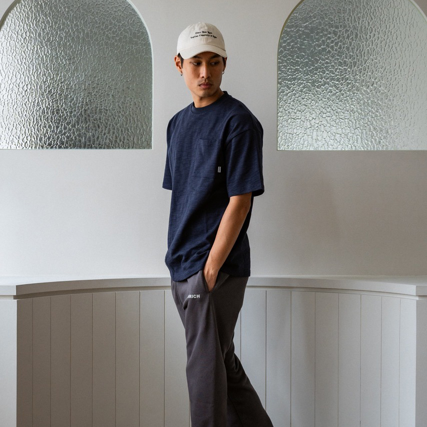 ENRICH DESIGN Pocket Tee 左胸口的口袋上繡著「eR」Logo 以及小標。1960 年代開始,在 T-Shirt 上面設計口袋是一件很常見的事情,因為胸前的口袋方便存放小物,所以得到了大眾的喜愛。花費數個月所的挑選布料,數名人員的實穿體驗,最終選用厚磅的布料及 ENRICH 專屬版型,全件採用厚磅竹節棉,除了增加日系感之外,也兼顧穿著的舒適度。