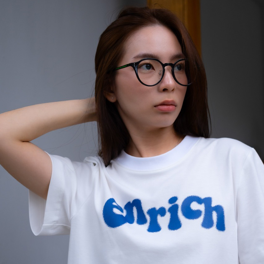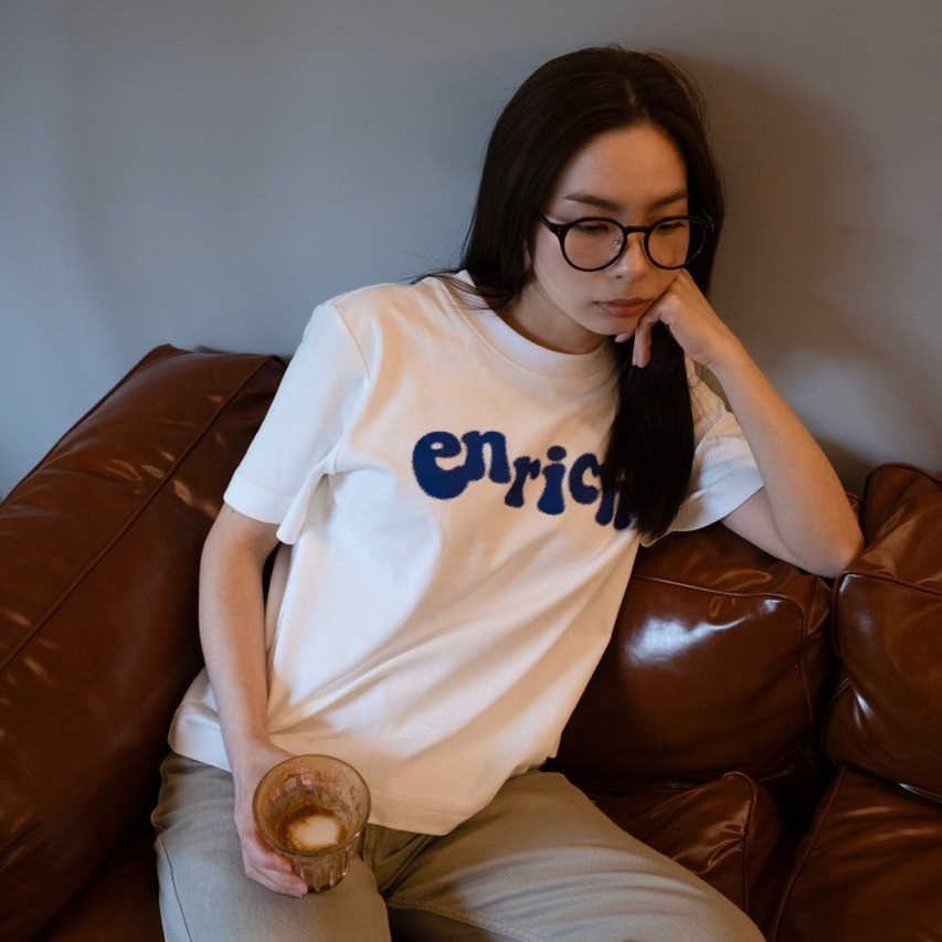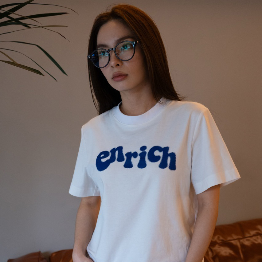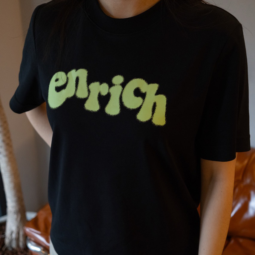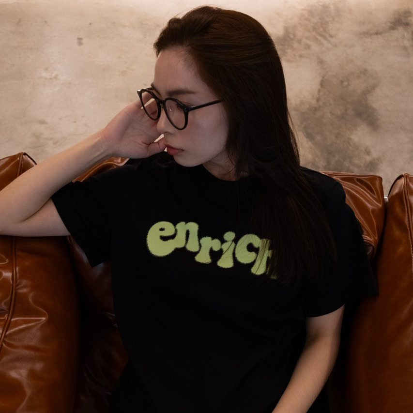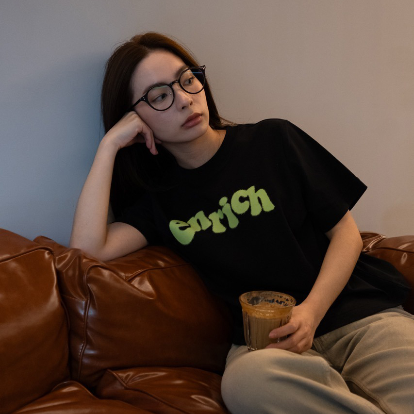 ENRICH Splash Ink Women Tee 沿用ENRICH女版Tee的版型,使用更加親膚的纖維面料(索羅納 – SORANA)屬聚酯纖維的一種,相比其他面料環保之外,具有吸水快、彈力佳等優點,與棉混紡達到更佳的穿著體驗。胸前的「enrich」噴墨效果採用的是以絲網打底的數位印刷,使圖案更加的牢固不易脫落。提供女性一件能夠日常愛用的T-Shirt。