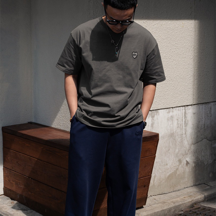 榻榻米繡愛心 Tee - Dim Gray
